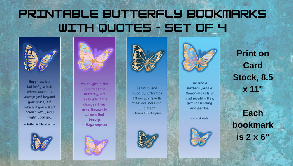Printable Butterfly Bookmarks with Quotes, Set of 4